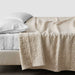 An heirloom piece that's nothing short of timeless. this lightweight. quilted bed blanket blends a classic block pattern with calming earth tones. Available in earthy shades of natural ivory or olive. each blanket is loomed from 100% organic cotton and is machine washable - the perfect bedroom staple.