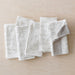 Handcrafted by a group of master weavers in Kannur. India. each napkin is made start-to-finish in a fair trade environment. Every set includes 6 individual napkins and is finished with one leather tie.